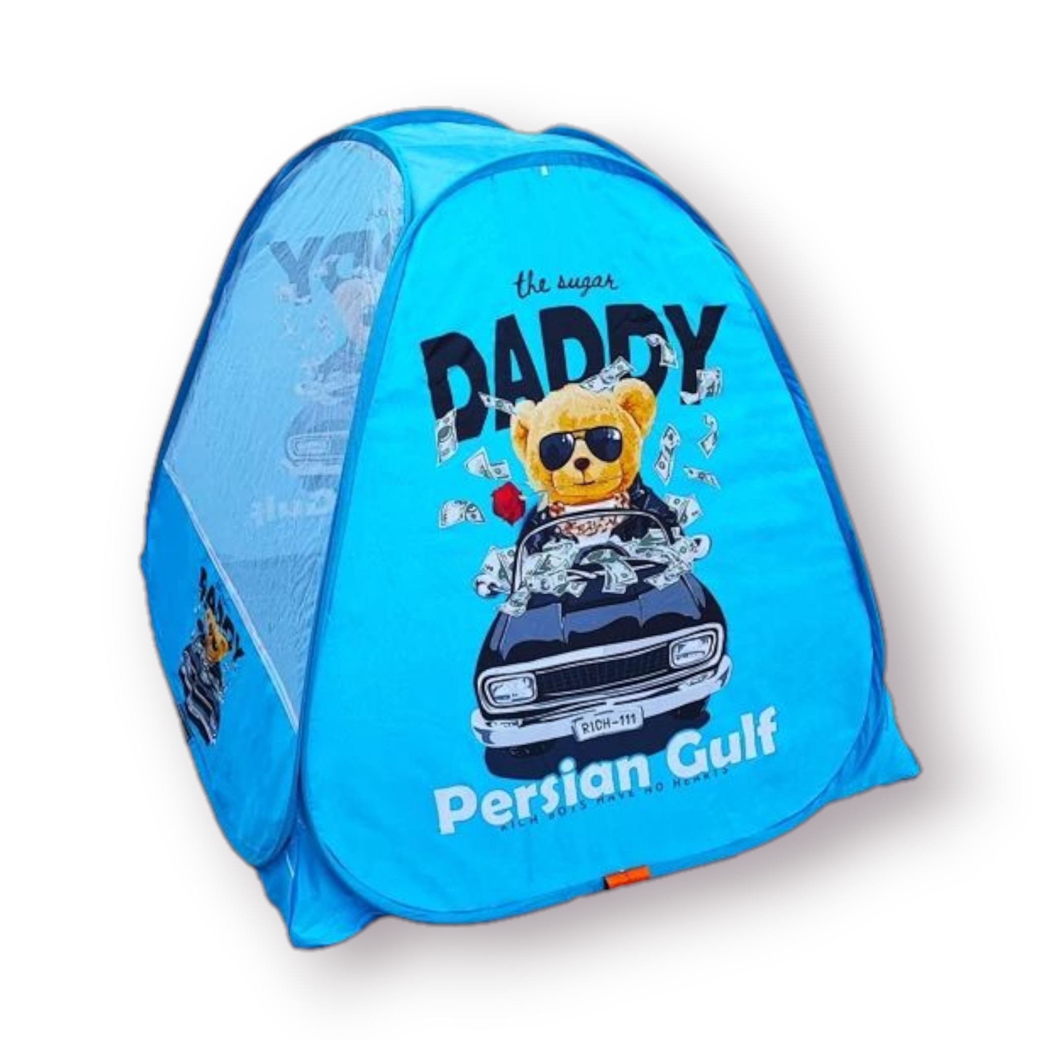 چادر بازی کودک فانتزی طرح دَدی بیر سایز ۱۳۰×۱۳۰ | بدنه مقاوم، فنر فولادی، طراحی کارتونی