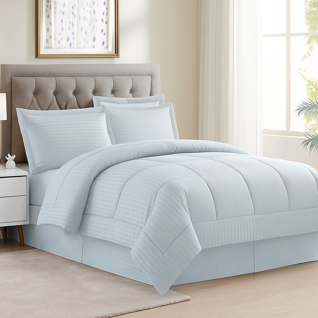 نیمست روتختی هتلی ژاکارد گرید A با روتختی کشدوزی شده و روبالشی – آبی آسمانی